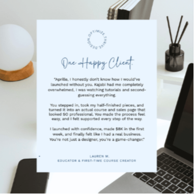 “Aprille completely transformed my website. Not only does it look stunning, but it finally feels like me. I booked 3 new clients the same week we launched!”