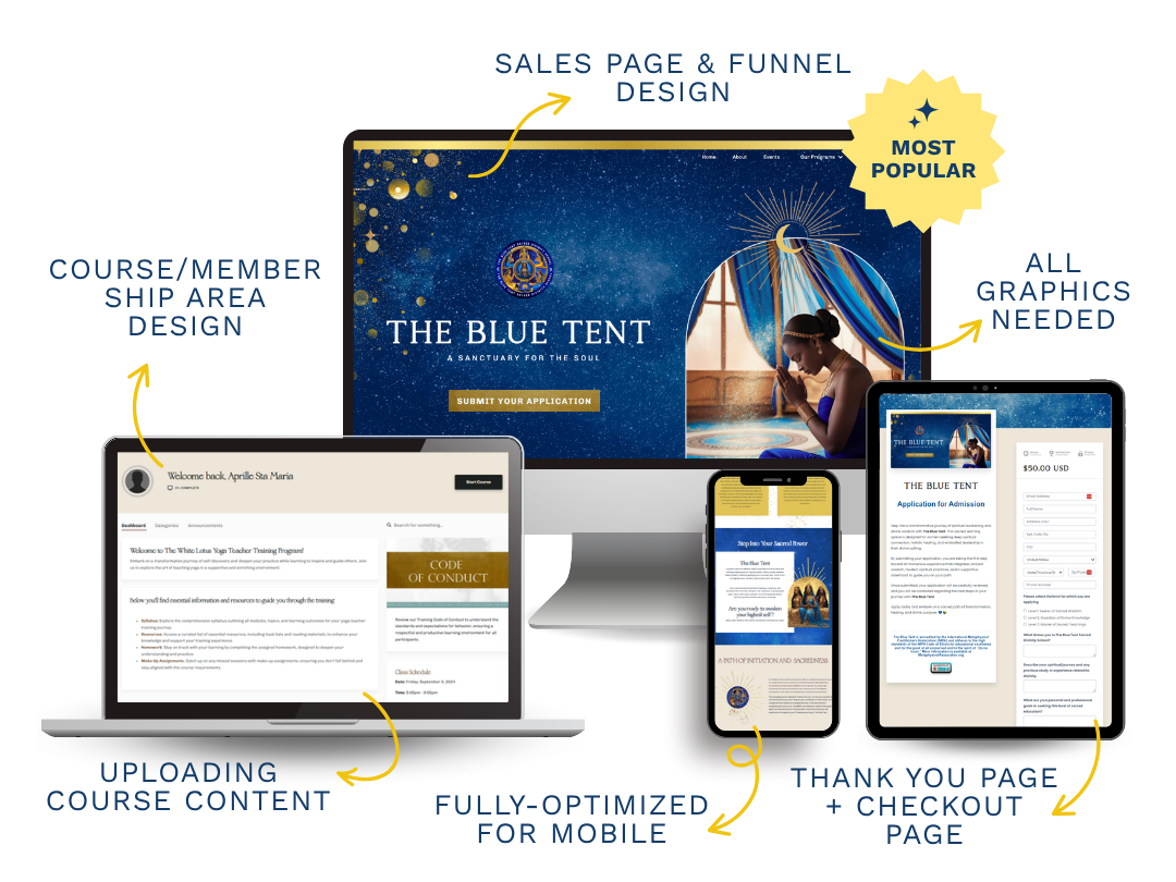 The tech, the design, the setup! So you can focus on what you do best: serving your audience and growing your business.