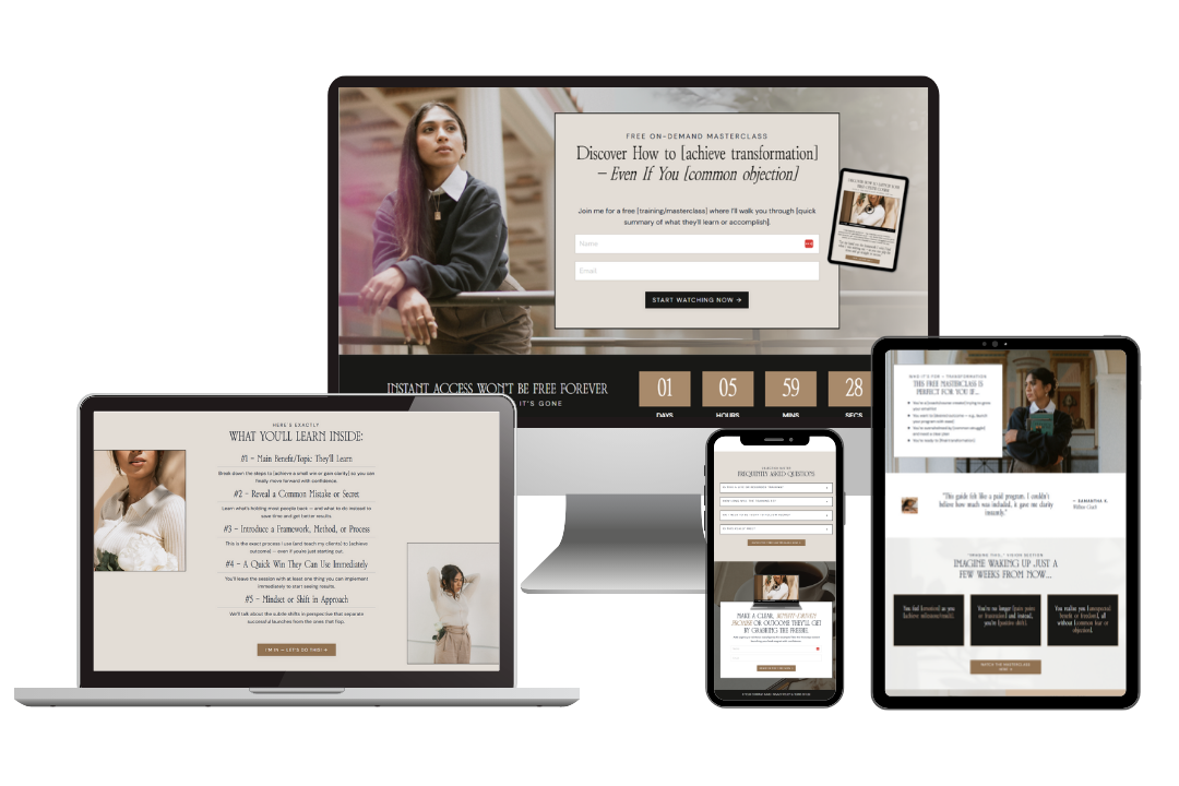 Ready to ditch the tech overwhelm and start filling your free trainings? This template is designed specifically for online entrepreneurs who want to convert curious browsers into registered students without the design stress or guesswork.